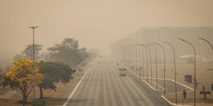 O cenário visto na capital federal é uma junção do acúmulo de fumaça produzida pelas queimadas no estado de São Paulo e a seca que, tradicionalmente, ocorre na região do Cerrado nesta época do ano. Em Brasília, não chove há mais de 120 dias.