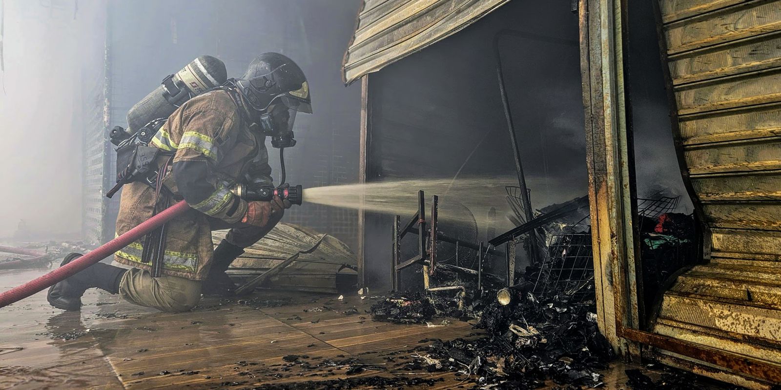 Rio de Janeiro 12/01/2025 - Defesa Civil combate incêndio no camelódromo da Uruguaiana. Fotos:  Angela Goes/CBMERJ