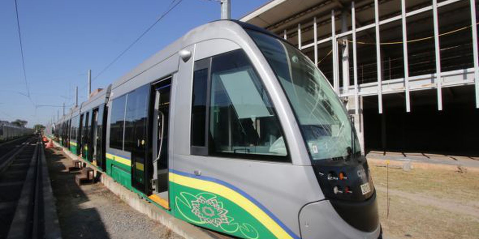 Obras do VLT de Mato Grosso passando por vistoria em julho de 2022.