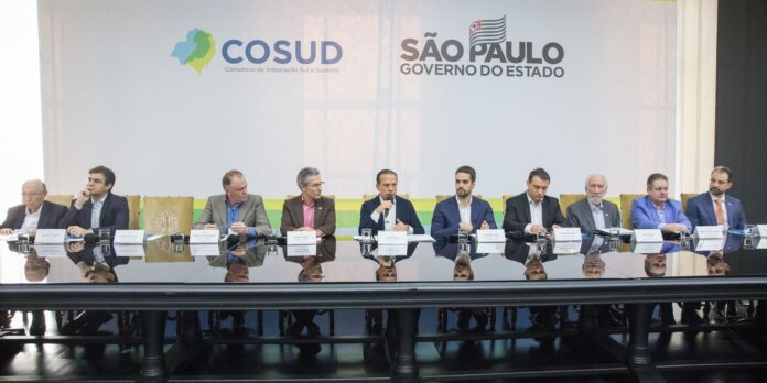 Durante a cerimônia de encerramento da reunião do Cosud, na Sala São Paulo, os governadores negaram que o consórcio tenha sido fundado por objetivos políticos. “O consórcio nasce não apenas para ser entre políticos. Nasce com o objetivo de fazer grande transformação da gestão pública dos estados e, acima de tudo, propositiva”, afirmou Ratinho Júnior.