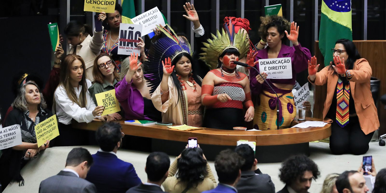 O Ministério dos Povos Indígenas (MPI) divulgou nota nesta terça-feira (30) em que classificou a aprovação do marco temporal pelos deputados federais como um “genocídio legislado”. A Câmara dos Deputados aprovou na noite de hoje o projeto de lei que estabelece o marco temporal para demarcação de terras indígenas. O projeto segue agora para o Senado.