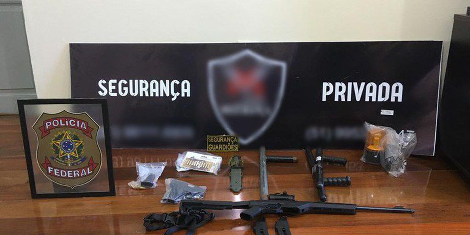 No local, os policiais encontraram armas de fogo, munições, fardas, cassetetes, capas de colete balístico e material de propaganda. Foram cumpridos nove mandados de busca e apreensão.