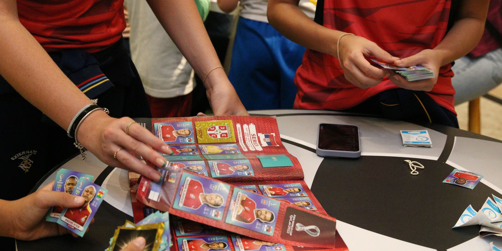 É hora do almoço e crianças e adultos aguardam o momento de trocar ou comprar as figurinhas do álbum da Copa do Mundo do Qatar, lançado em agosto deste ano. Um shopping do bairro Anália Franco, na Zona Leste de São Paulo reúne, todos os dias, cerca de duzentos entusiastas, que se encontram das 10h às 22h para completar a coleção.