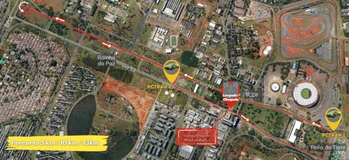 A partir das 6h30, na via S1, no trecho entre a Praça do Cruzeiro e a Torre de TV, as três faixas próximas ao canteiro central serão bloqueadas para o tráfego de veículos, sendo destinadas aos participantes do evento.