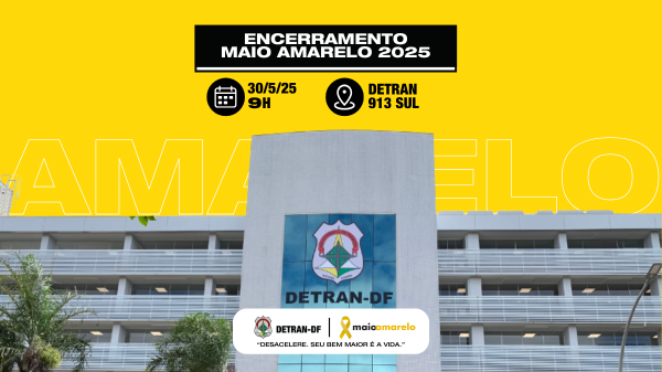 (Brasília-DF – 29/5/2025) – O Departamento de Trânsito do Distrito Federal realiza, nesta sexta-feira (30), a solenidade de encerramento das atividades do Maio Amarelo 2025, das 9h às 11h30, no auditório da nova unidade da autarquia, localizada na 913 Sul.