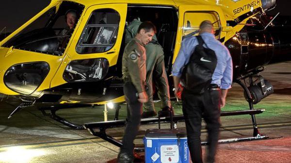 A tripulação foi composta pelo comandante Sergio Dolghi, copiloto Rafael Sena e operador aerotático Guilherme Goulart. A parceria entre o Detran-DF e a Central Estadual de Transplantes do Distrito Federal (CET-DF) começou em 2015 e tem garantido agilidade ao transporte de órgãos para transplantes realizados no Distrito Federal. Nesses dez anos, o helicóptero Sentinela do Detran-DF realizou o transporte de 78 corações.