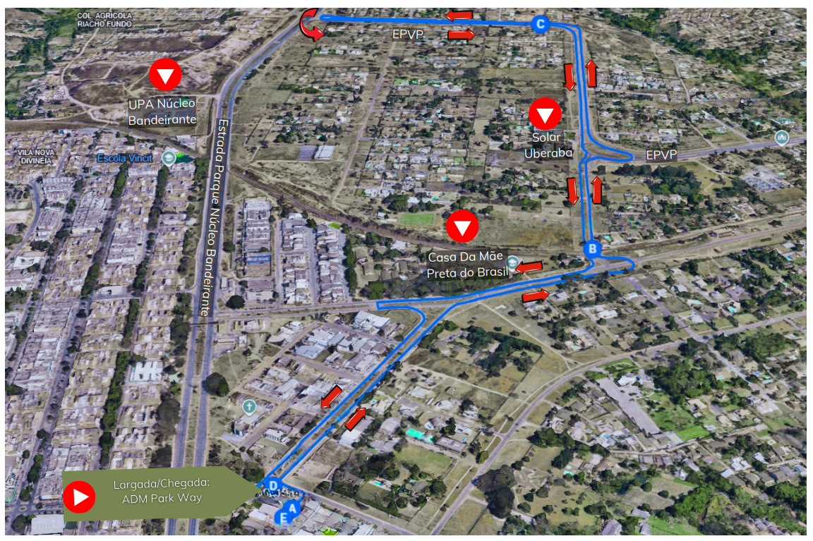 As vias de acesso à corrida ficarão totalmente fechadas a partir das 6h, sendo permitido o acesso somente aos participantes do evento e organizadores. Os corredores sairão do gramado próximo à 14ª DP em direção ao Hospital Regional do Gama e, de lá, pegam a via que passa em frente ao Colégio Ceman, fazendo o último retorno antes da rotatória da Avenida Contorno. Neste sentido, a via será totalmente fechada para o tráfego de veículos e, no sentido de volta ao ponto de partida, a via será compartilhada, ficando a faixa da esquerda para os atletas e a da direita para veículos.