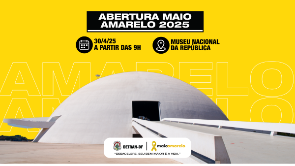 (Brasília – 28/4/2025) – Com o tema “Desacelere. Seu bem maior é a vida”, o Departamento de Trânsito do Distrito Federal, em parceria com outros órgãos do governo local e federal, realiza a abertura do Movimento Maio Amarelo 2025 na capital do país, na quarta-feira (30), a partir das 9h, no Museu da República.