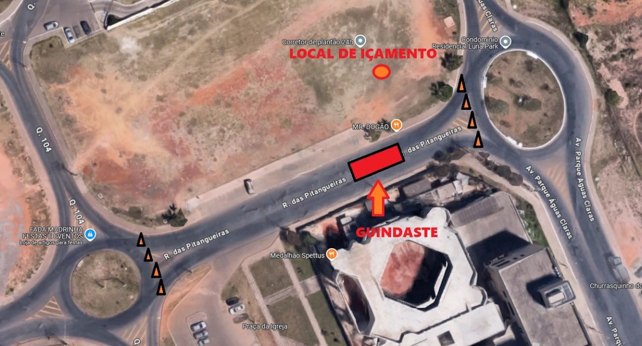 (Brasília, 27/02/2025) – Nesta quinta-feira (28), a Rua das Pitangueiras será interditada das 9h às 19h, entre as quadras 103/104, para a montagem de uma grua vinda de São Paulo. O equipamento será utilizado no içamento de materiais para um prédio em construção na região.