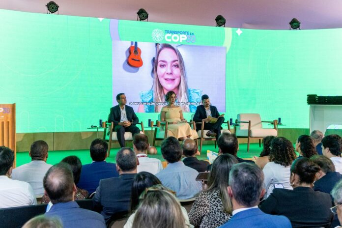 O lançamento ocorreu na quarta-feira (12), na Estação Desenvolvimento CNT, localizada na Green Zone do Pavilhão Brasil. Aline participou de forma remota.