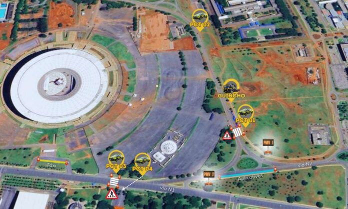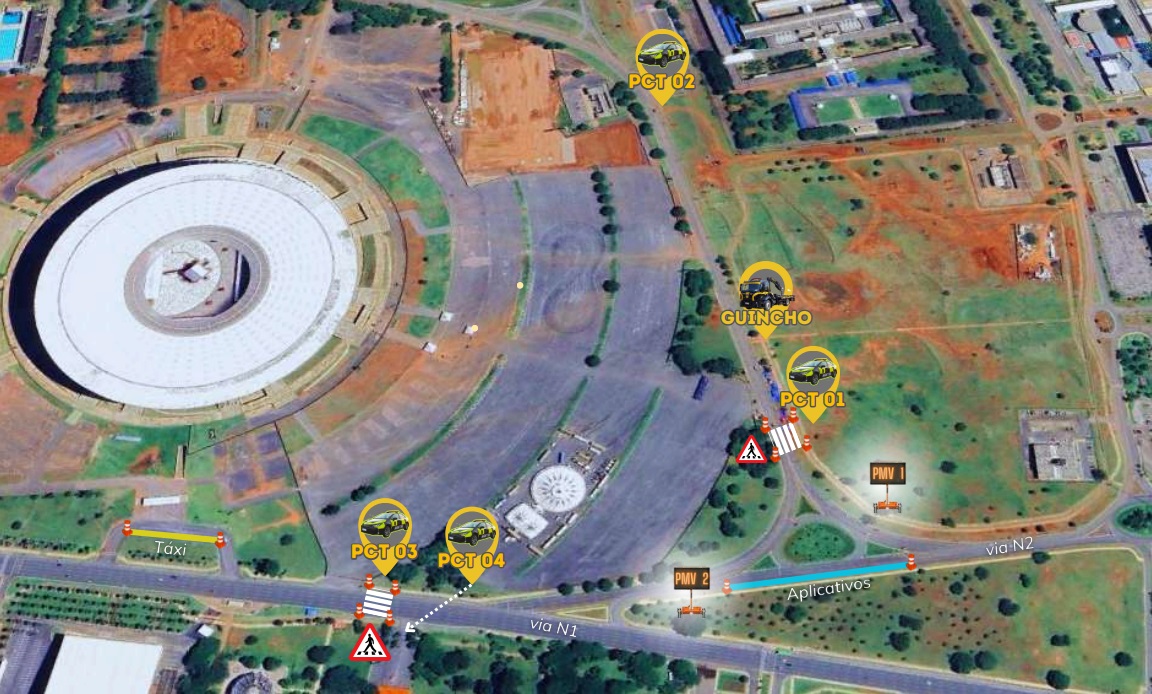 Na via N1 e na via contorno do Estádio Nacional de Brasília (ENB), os agentes de trânsito implantarão sinalização viária para a travessia de pedestres e para impedir estacionamento irregular. Também serão utilizados painéis eletrônicos de mensagens para orientar os condutores. Na via N2, na altura da rotatória de acesso à via contorno ENB, será delimitada uma área de embarque para veículos de transporte de passageiros por aplicativo. Na entrada principal de automação da Arena BRB será sinalizada uma área para táxis.