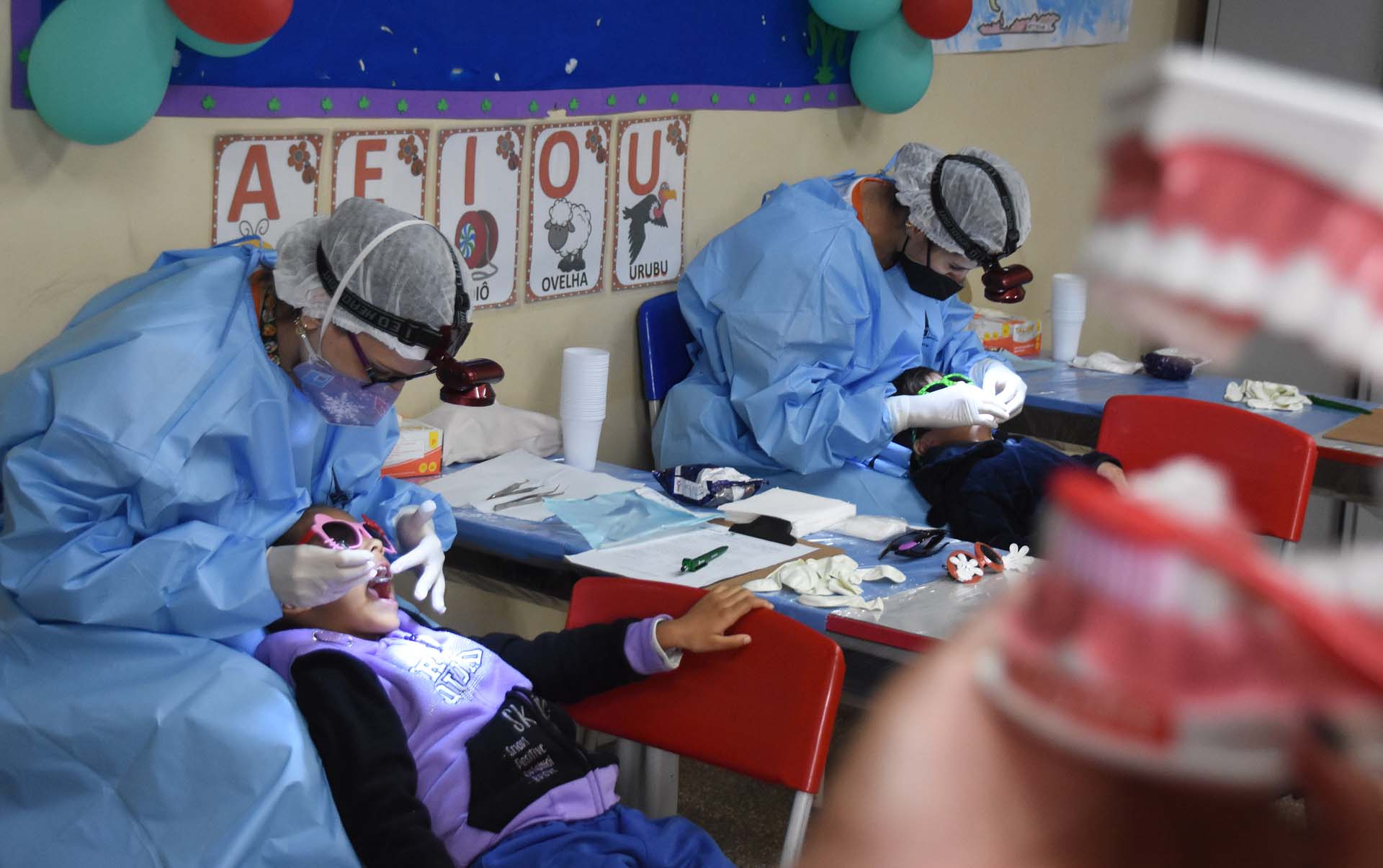 Quem passou pelo local ganhou kit de higiene bucal, orientações sobre escovação correta e houve o atendimento com o projeto-piloto de Tratamento Restaurador Atraumático, que consiste em uma abordagem minimamente invasiva que compreende medidas preventivas, terapêuticas e restauradoras em relação à cárie dental e no controle da doença.