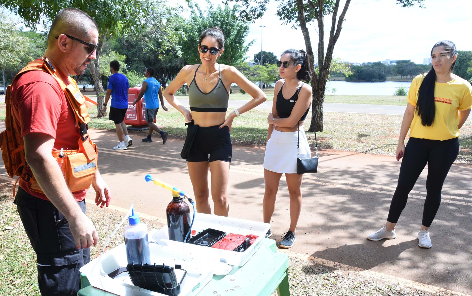 As irmãs Isabella e Giovanna Martins, 24 e 19 anos, respectivamente, participaram da ação no Parque da Cidade. “Estávamos passando, vimos o estande e ficamos curiosas para saber sobre o que era”, conta Isabella, que é estudante de medicina. Ela convenceu a irmã mais nova a aprender sobre os primeiros socorros. “É de fato algo básico e que precisamos ter conhecimento. Toda a população deveria conhecer”, acredita Giovanna.