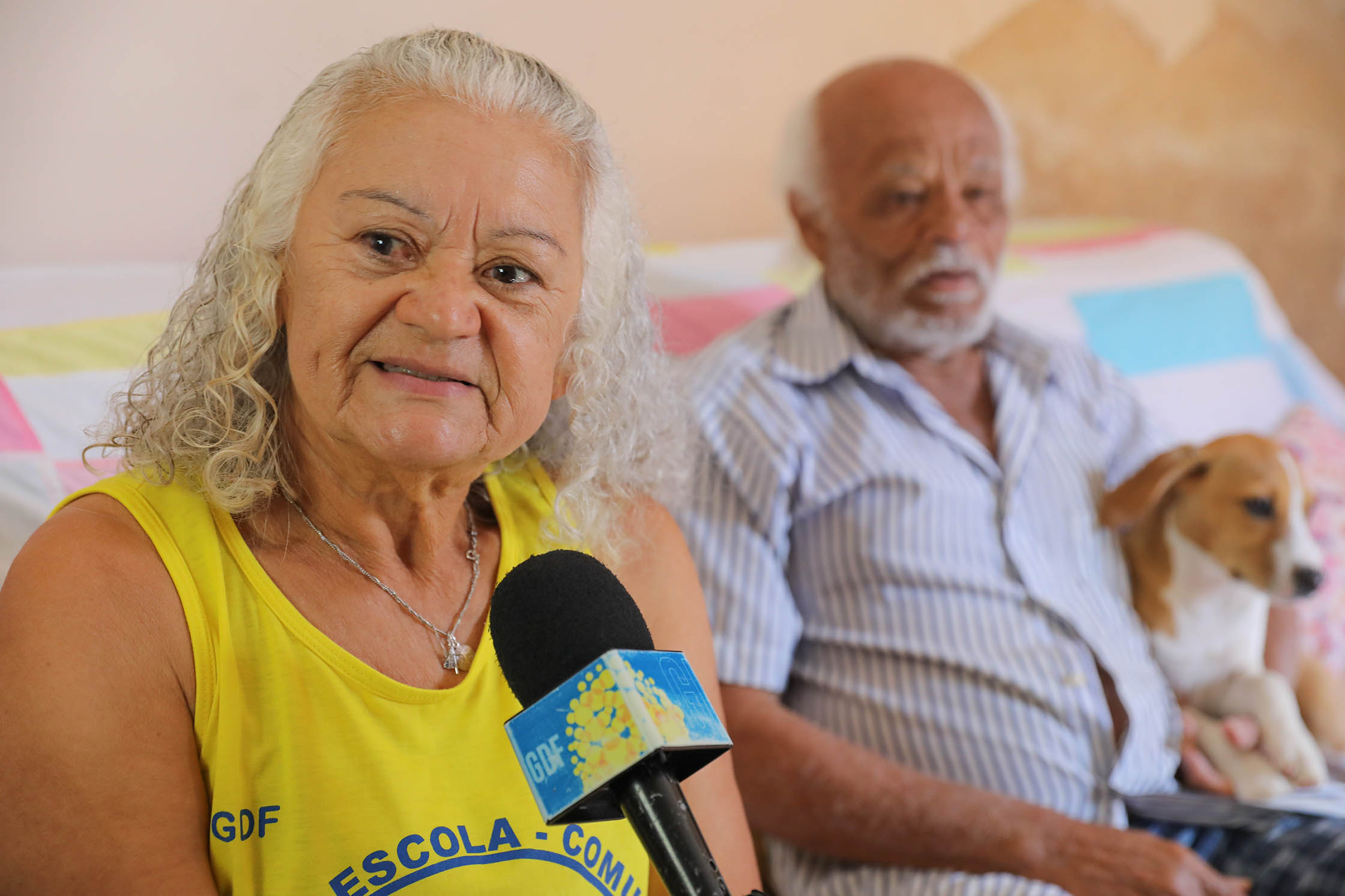 A enfermeira Ana Maria Padue faz visita domiciliar aposentado João Antônio Rodrigues, que se emociona: “Como que não chora? A gente fica muito feliz com esse cuidado” | Foto: Paulo H. Carvalho/Agência Brasília