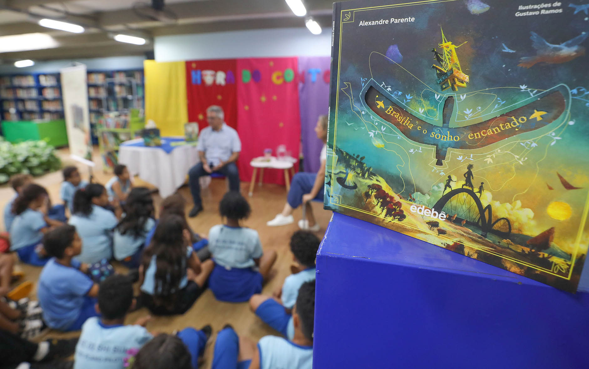 Na ocasião, estudantes do 5º ano da Escola Classe 01 SHI-Sul, do Lago Sul, participaram de um bate-papo com o escritor Alexandre Parente sobre uma de suas obras, Brasília e o sonho encantado. “Nós unimos a data de comemoração do Dia da Biblioteca com o mês de abril, durante o qual, todos os anos, a gente faz atividades específicas sobre a cidade de Brasília”, apontou a coordenadora pedagógica da biblioteca, Ana Nélia Torquato.