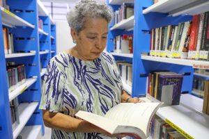 Ao retornar ao espaço, a aposentada se emociona. “Fazia um tempinho que eu não vinha à biblioteca. Quando olhei aquela sala cheia de gente ali no espaço dos computadores e lá fora, me deu orgulho, não só como bibliotecária, mas como ser humano, membro e parte dessa comunidade. Estou aqui há mais de 40 anos e fico orgulhosa de ver que aqui realmente se transformou numa biblioteca”, comenta.