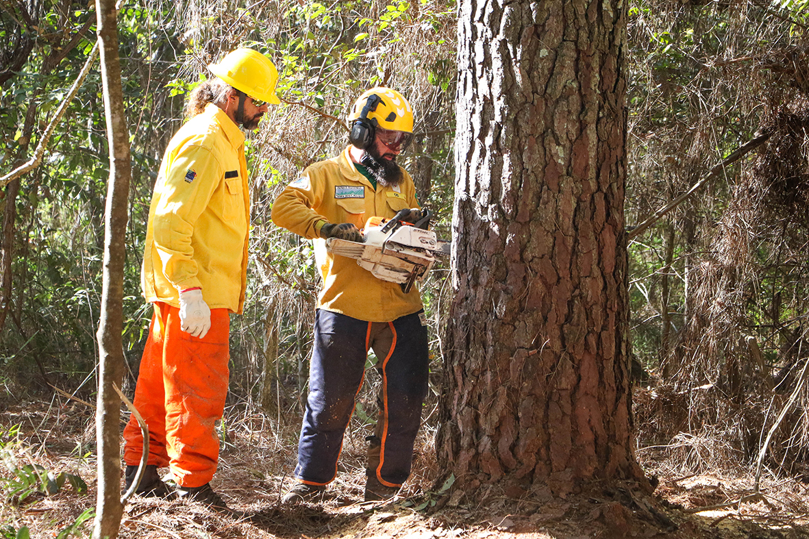 Os brigadistas aprendem a progressão das habilidades usando a motosserra e, ao final do curso, há um módulo para cortar na linha de fogo e técnicas específicas usadas para isso nos Estados Unidos da América (EUA).