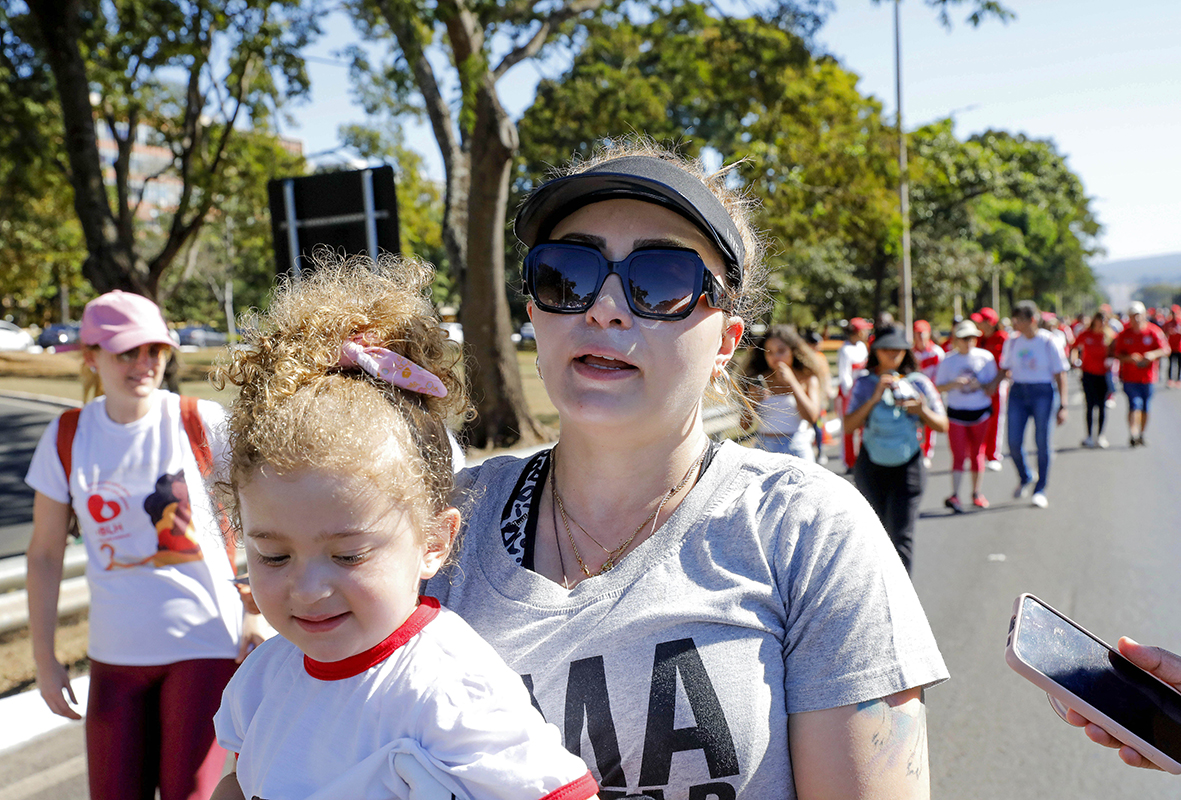 Sob a entoação da frase “amor em cada gota doada, vida em cada gota recebida”, profissionais da saúde, doadoras de leite humano, bombeiros e apoiadores da causa tomaram as faixas do Eixão do Lazer, na altura da 108 Norte, em participação à Caminhada pela Doação de Leite Materno, realizada na manhã deste domingo (26).