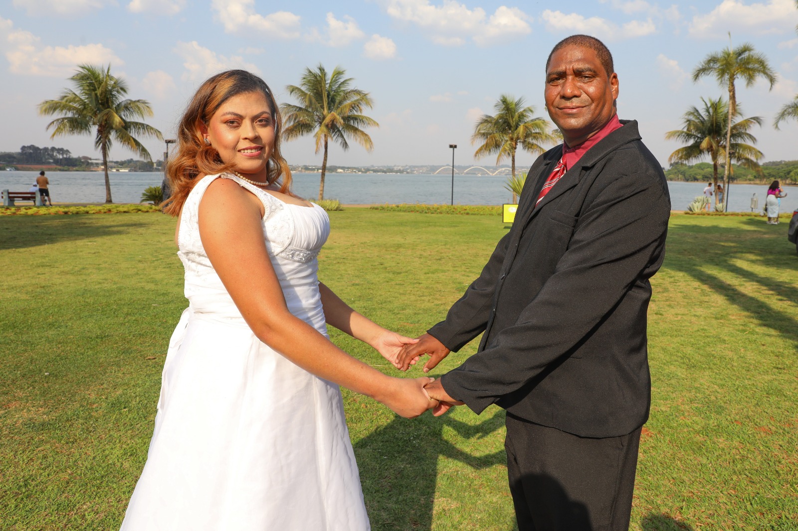 “Eu estou maravilhada com essa oportunidade única que o GDF está dando para nós. Não é todo mundo que tem condições de realizar o sonho de se casar na beira do Lago. E além de tudo, disseram que esse vestido meu eu to sendo a primeira a vesti-lo. Estou me sentindo ainda mais especial e única”.