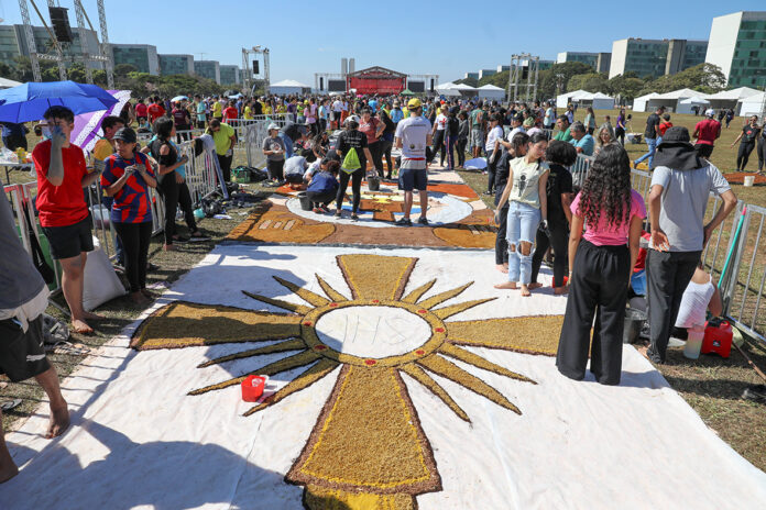 O evento conta com a participação de muitas famílias, jovens e crianças. O estudante André Bandeira, 11 anos, que mora no Jardins Mangueiral, teve sua primeira experiência na celebração. “Esse é meu primeiro dia e eu já adorei tudo que a gente fez aqui. A gente pega os ingredientes e coloca a mão na massa. A gente fez uma hóstia. Vamos celebrar Jesus que vai passar pelo nosso tapete”, disse.