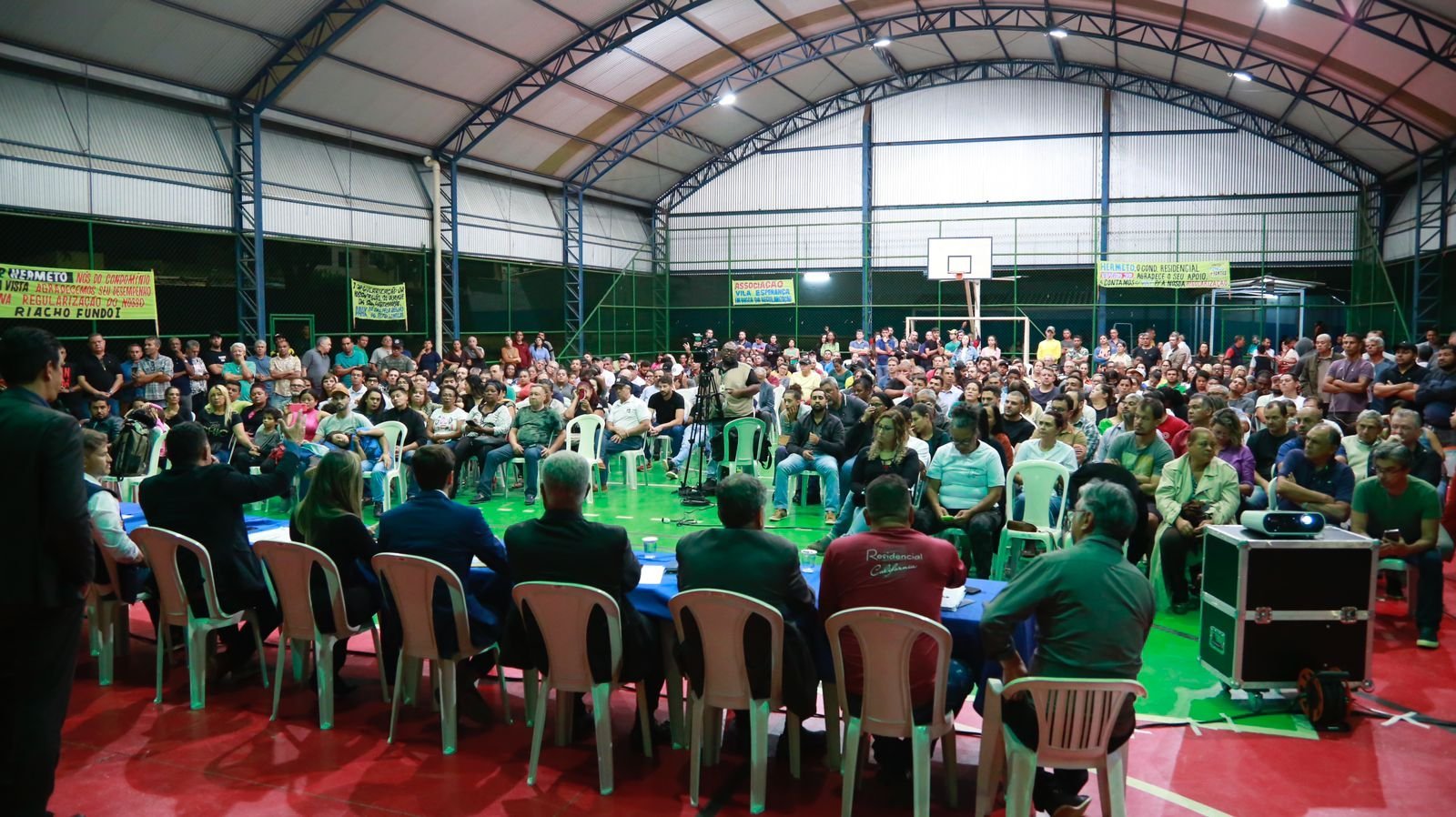 O presidente da Comissão de Assuntos Fundiários (CAF) deputado distrital Hermeto (MDB), realizou nesta segunda-feira (28) uma Audiência Pública para debater a regularização da Colônia Agrícola Kanegae e ARINE Sucupira. Mais de 600 pessoas lotaram a quadra de esportes coberta do Centro de Ensino Médio I do Riacho Fundo I, o tema é de grande interesse para centenas de famílias moradoras dessas regiões.