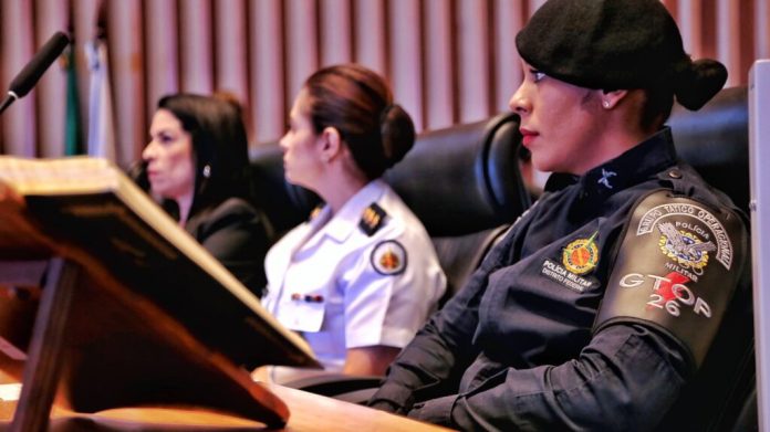 O evento aconteceu no Plenário da Câmara Legislativa do DF, às 9 horas e contou com a presença de policiais militares femininas oficiais e praças que receberam Moção de Louvor. Também marcaram presença a secretária de Justiça Marcela Passamani, a Secretária da Mulher Gisele Ferreira, o Secretário Adjunto de Estado de Governo Valmir Lemos de Oliveira e outras autoridades.