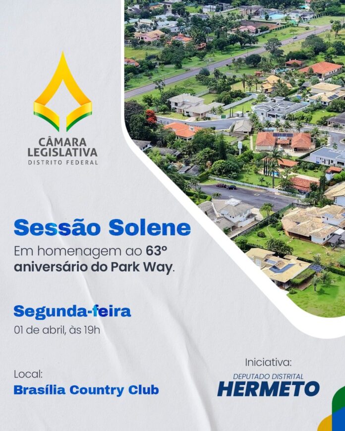 Hoje dia 1 de abril, a Câmara Legislativa, por iniciativa do deputado distrital Hermeto (MDB), realizará uma Sessão Solene no Brasília Country Club à partir das 19h para celebrar o aniversário e homenagear autoridades locais, líderes comunitários e moradores.
