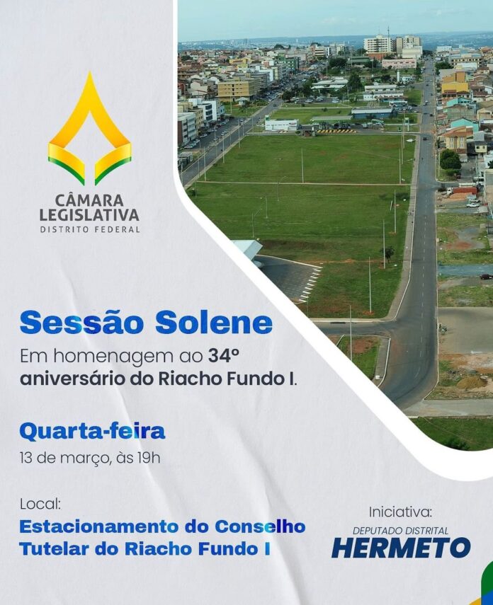 Em comemoração ao aniversário do Riacho Fundo, Hermeto realizará hoje no estacionamento do Conselho Tutelar à partir das 19h uma Sessão Solene para parabenizar a região e também para reafirmar seu compromisso com todos. Já no Park Way o aniversário será celebrado também com uma Sessão Solene, mas no dia 1 de abril.