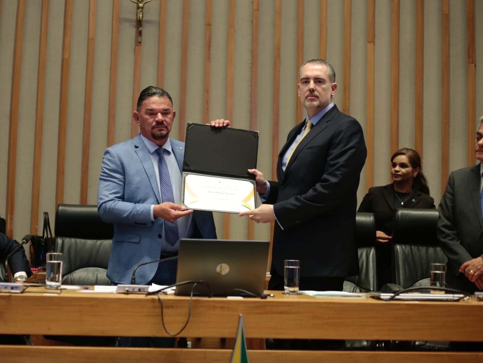 Nesta quarta-feira (5), o plenário da Câmara Legislativa do Distrito Federal foi palco de uma sessão solene organizada pelo deputado distrital Hermeto (MDB). O evento teve como objetivo homenagear e entregar o Título de Cidadão Honorário de Brasília ao ministro do Tribunal Superior Eleitoral, Dr. André Ramos Tavares.
