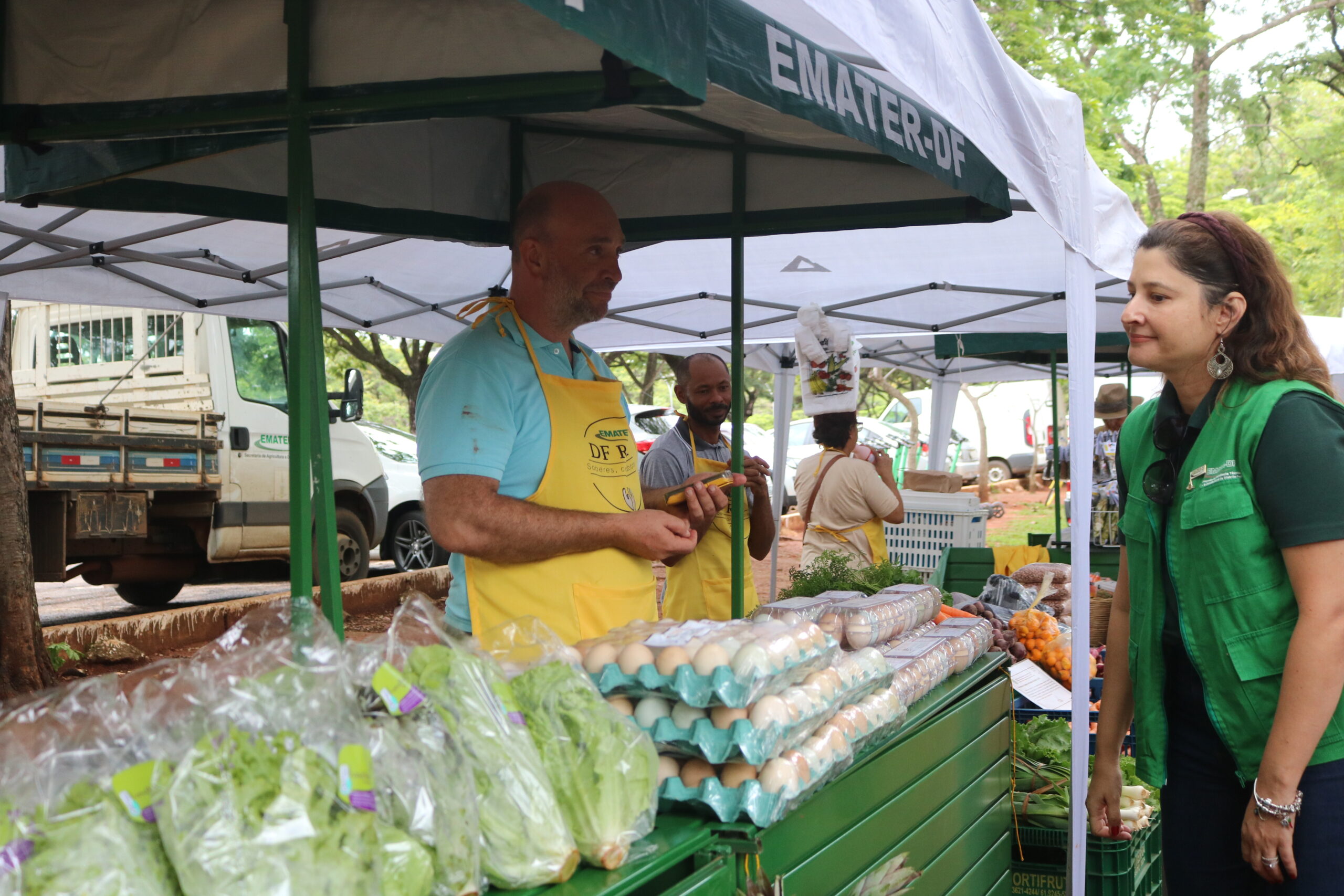 Disponíveis em diversos pontos do Distrito Federal, as feiras rurais organizadas pela Emater são uma boa opção para a compra de alimentos saudáveis, produzidos pela agricultura familiar por meio do cultivo orgânico ou convencional. Nelas, os produtores rurais acompanhados pela empresa comercializam diversos produtos, como plantas, hortaliças, legumes, frutas, itens de panificação, artesanatos, mel, café, pimentas, doces e geleias, entre outros artigos.
