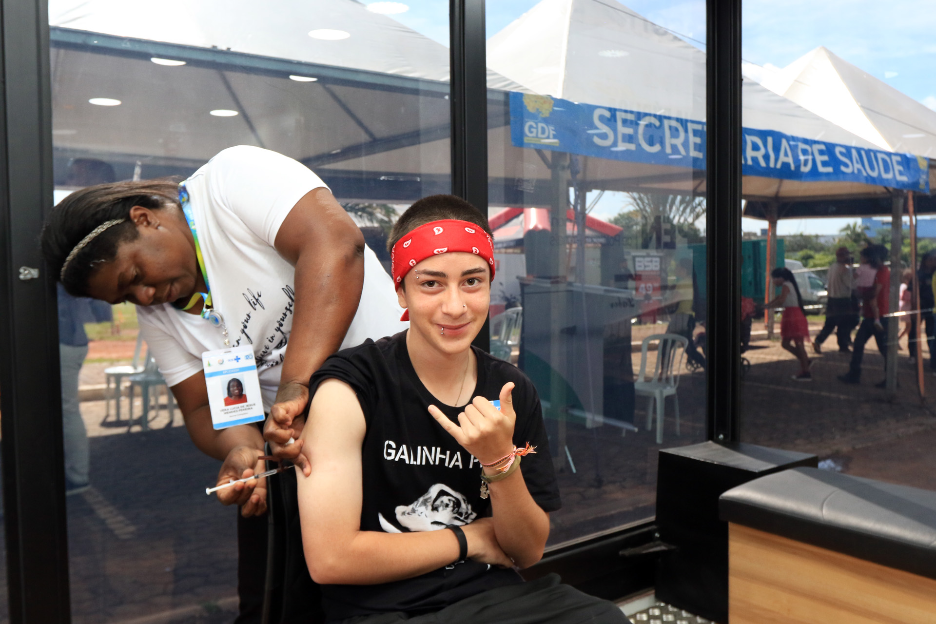 Em uma tenda montada na praça da Administração Regional de São Sebastião, foram aplicados imunizantes contra o papilomavírus humano (HPV), febre amarela e bivalente. As ações ocorreram durante a 23ª edição do GDF Mais Perto do Cidadão, em parceria com a Secretaria de Justiça e Cidadania (Sejus-DF).