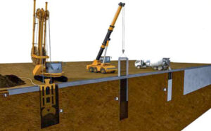 Carvalho se refere à utilização de um clamshell, equipamento de escavação que se assemelha à boca de um jacaré. O maquinário é preso a um guindaste com capacidade para erguer aproximadamente 70 toneladas. Enquanto escava, lança um polímero no solo – a mistura química estabiliza o terreno e evita risco de desmoronamento.