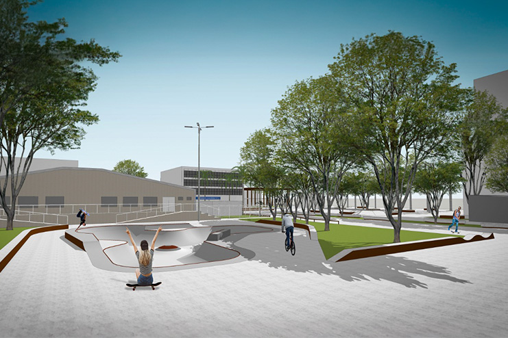 A proposta é a regularização da área ocupada pelo restaurante comunitário da quadra com a criação de um lote. Em frente ao local será criada uma praça multifuncional, onde atualmente há estacionamentos irregulares. O espaço será todo adaptado para favorecer a prática de esportes urbanos, ganhando ainda uma nova pista para skate, patins e BMX.