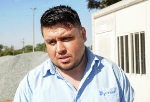 “Além das estruturas administrativas, temos ainda cinco contêineres formando o refeitório, quatro para os banheiros e sete usados como depósito”, informa.
