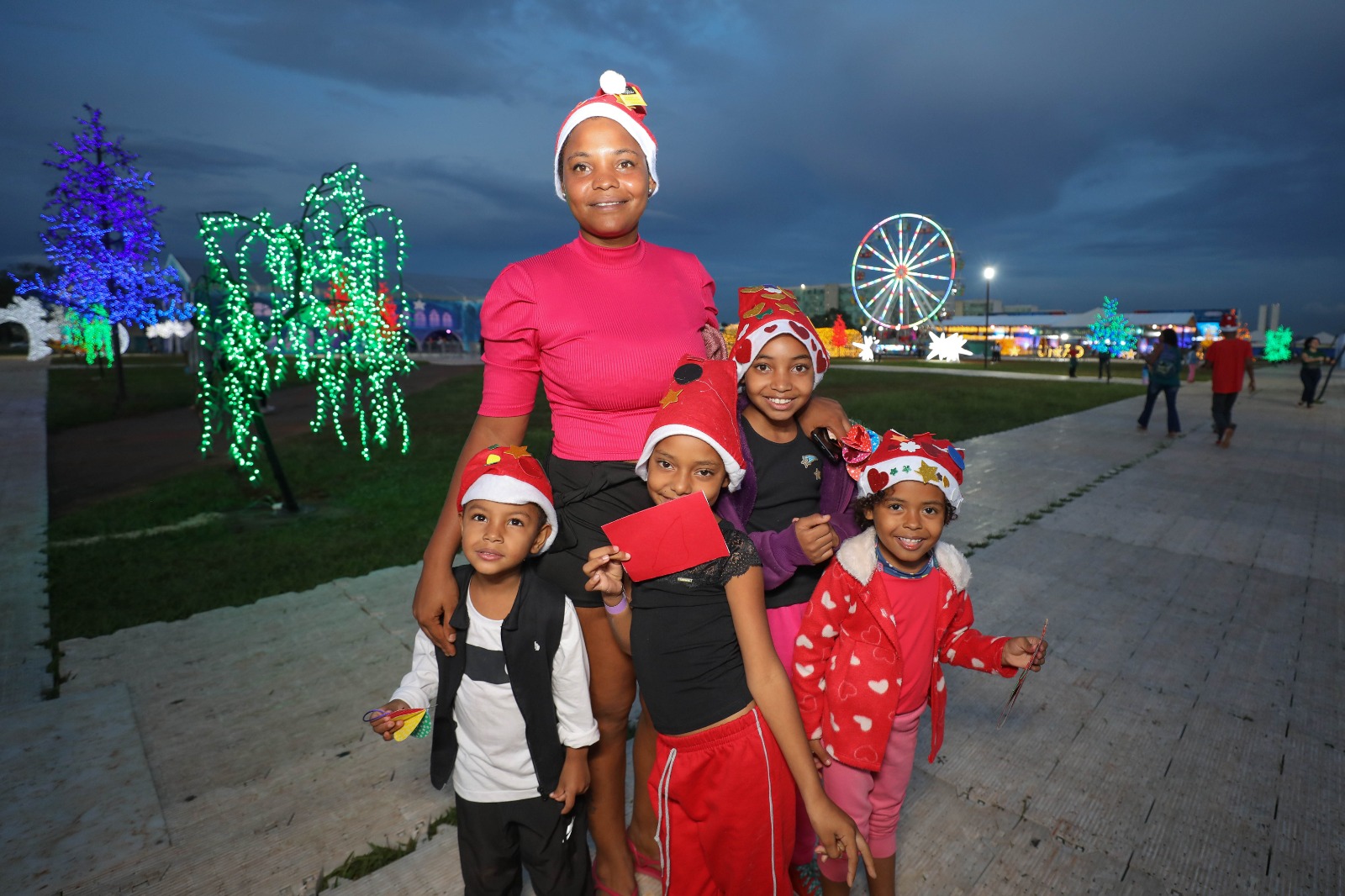 Cerca de 350 crianças conheceram as instalações do Nosso Natal, evento comemorativo do Governo do Distrito Federal (GDF), na Esplanada dos Ministérios, nesta segunda-feira (2). A ação social faz parte da campanha promovida pela Chefia-Executiva de Políticas Sociais, e contemplou pequenos atendidos por instituições sociais do Varjão, Samambaia e Paranoá. A garotada foi ao espaço acompanhada de pais e responsáveis, totalizando público de aproximadamente 700 pessoas.