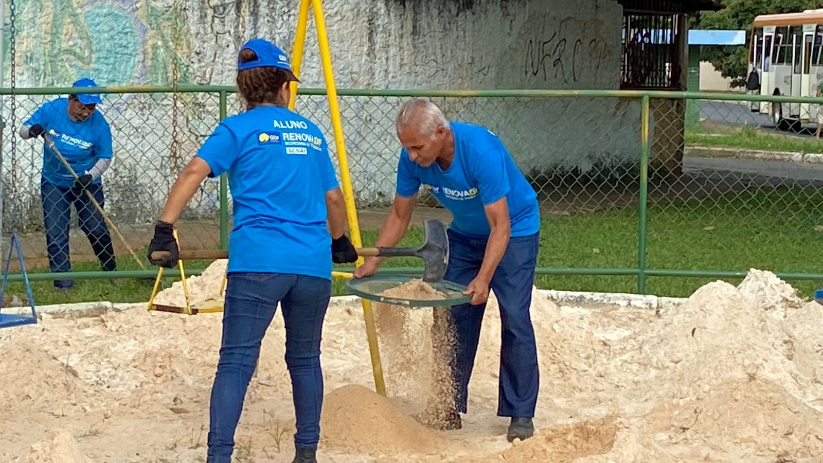Aproximadamente 900 alunos do RenovaDF têm atuado, este mês, na reforma interna do ginásio de esportes e dos parques infantis. Além disso, as equipes da administração regional seguem os trabalhos de recuperação do campo de areia, na Quadra 1.201. “Fizemos a instalação de meio-fio ao redor da quadra, reposição de areia, instalamos e pintamos os alambrados”, detalhou a coordenadora de licenciamento, obras e manutenção da administração, Loyane Damares.