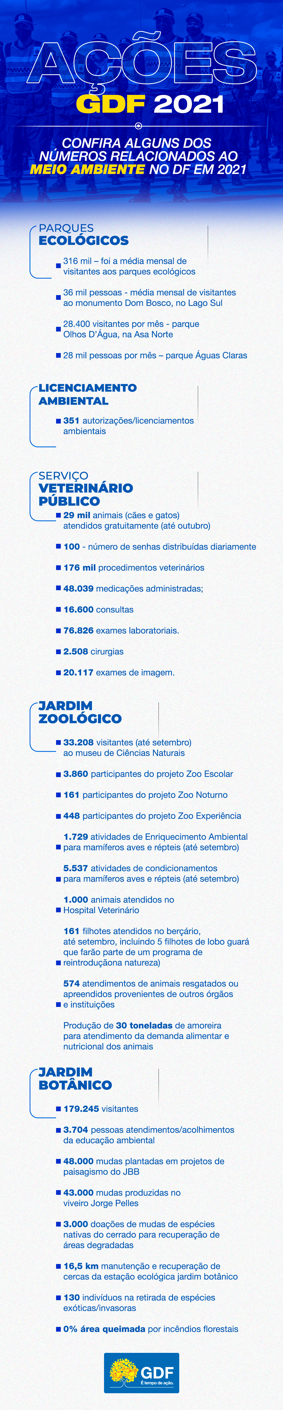 Os parques entraram definitivamente na rota do brasiliense em 2021. Foram o porto seguro para quem queria relaxar ou praticar exercício físico, com segurança. Principais protagonistas para garantir o bem-estar, físico e emocional da população, esses espaços, mesmo durante a pandemia de covid-19, receberam ações de preservação e manutenção. Somente em 2021, dez parques ecológicos foram recuperados.