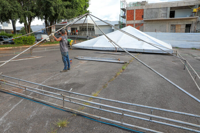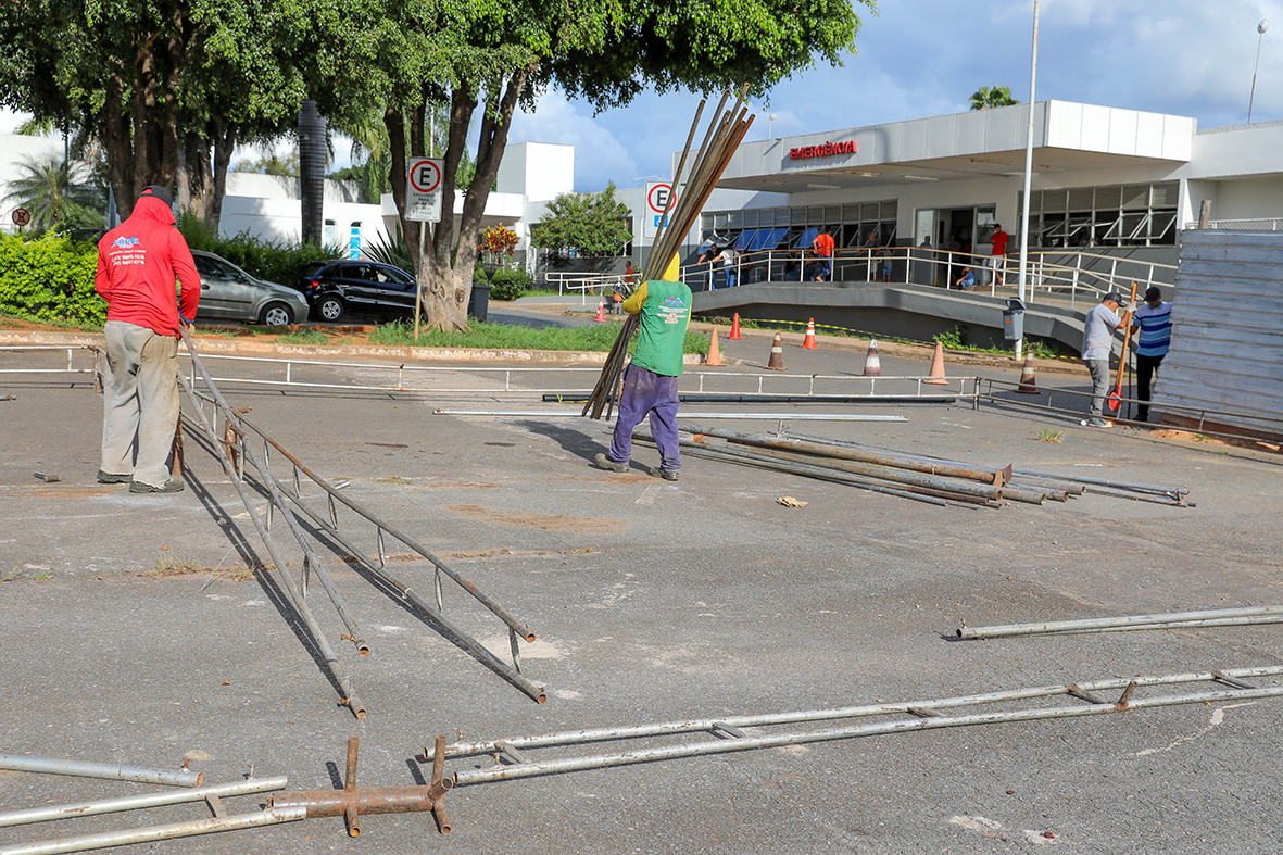 Pela manhã, no estacionamento da UBS 1 do Guará, a empresa contratada pelo GDF deu início à montagem das estruturas metálicas que servirão como base para as tendas. Os toldos de revestimento também foram instalados. Eles darão a proteção necessária aos pacientes e profissionais de saúde que utilizarão esses espaços.