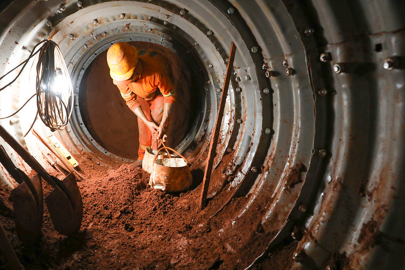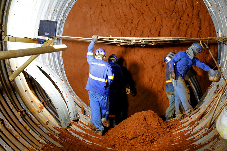 Usando o método tunnel liner, que gera transtorno mínimo à população, mais de 300 funcionários trabalham no Drenar DF | Foto: Paulo H. Carvalho/Agência Brasília