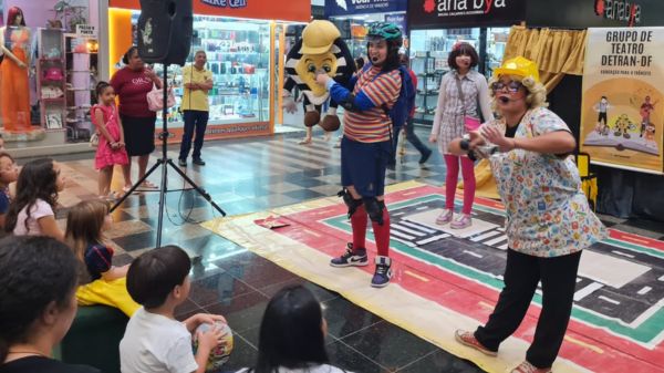 No mesmo dia, a equipe também esteve em Ceilândia, realizando o espetáculo teatral no CEPI Papagaio, voltado para crianças de 2 a 4 anos, com uma linguagem lúdica que reforçou noções de segurança e cidadania no trânsito desde a infância.