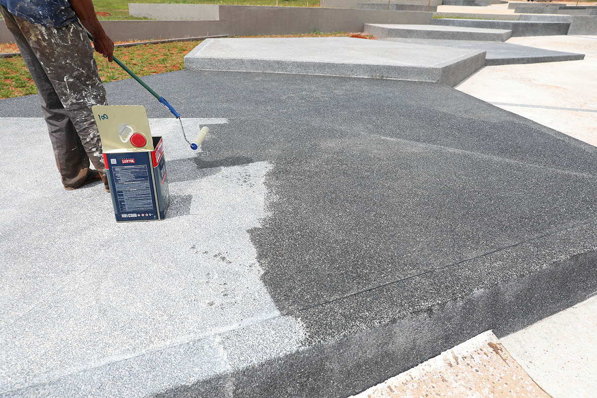 Novo cartão-postal de Brasília, a Praça Internacional da Paz começou a receber um revestimento em fulget nos pentágonos. A impermeabilização dá mais segurança e conforto para os futuros frequentadores da praça.