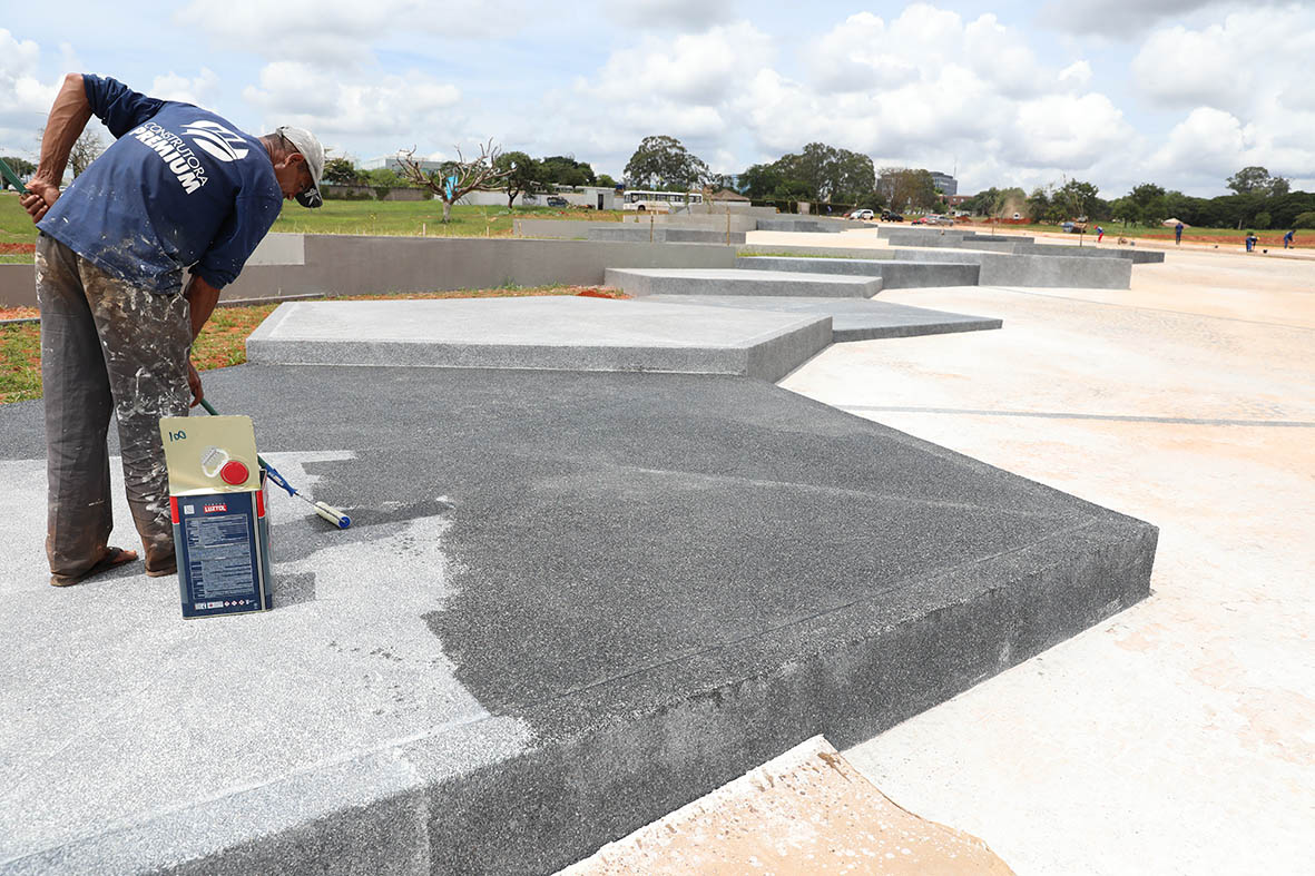 A impermeabilização garante mais segurança e conforto para os futuros frequentadores da praça | Fotos: Paulo H. Carvalho/Agência Brasília