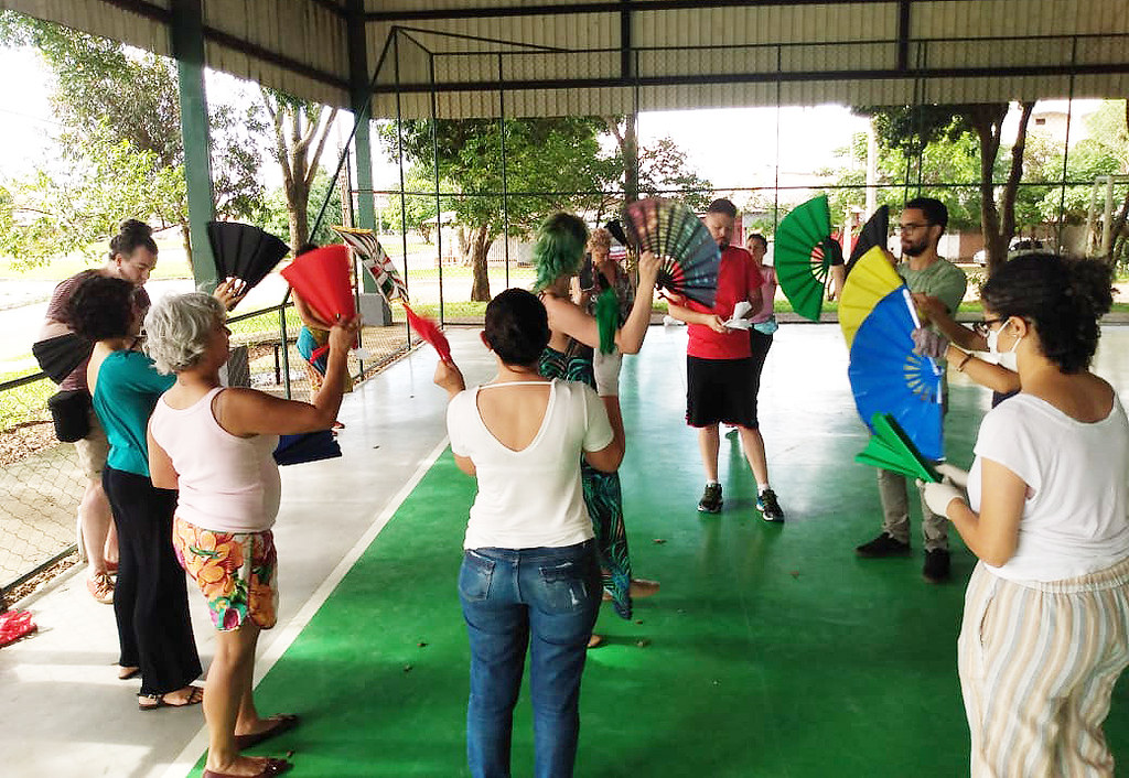 Até o dia 11 de fevereiro, a escola oferece oficinas em diversas cidades para esquentar os tamborins antes do Carnaval. Afinal, nos últimos dois anos não teve folia no DF devido à pandemia da covid-19. Neste sábado (21), na sede da escola, no Setor Comercial Sul (SCS), foi dia de integrantes do bloco – ou fanfarra – Calango Careta, desde 2016 na capital, passar a um grupo de 10 aprendizes os conceitos de teatro para as apresentações de rua.