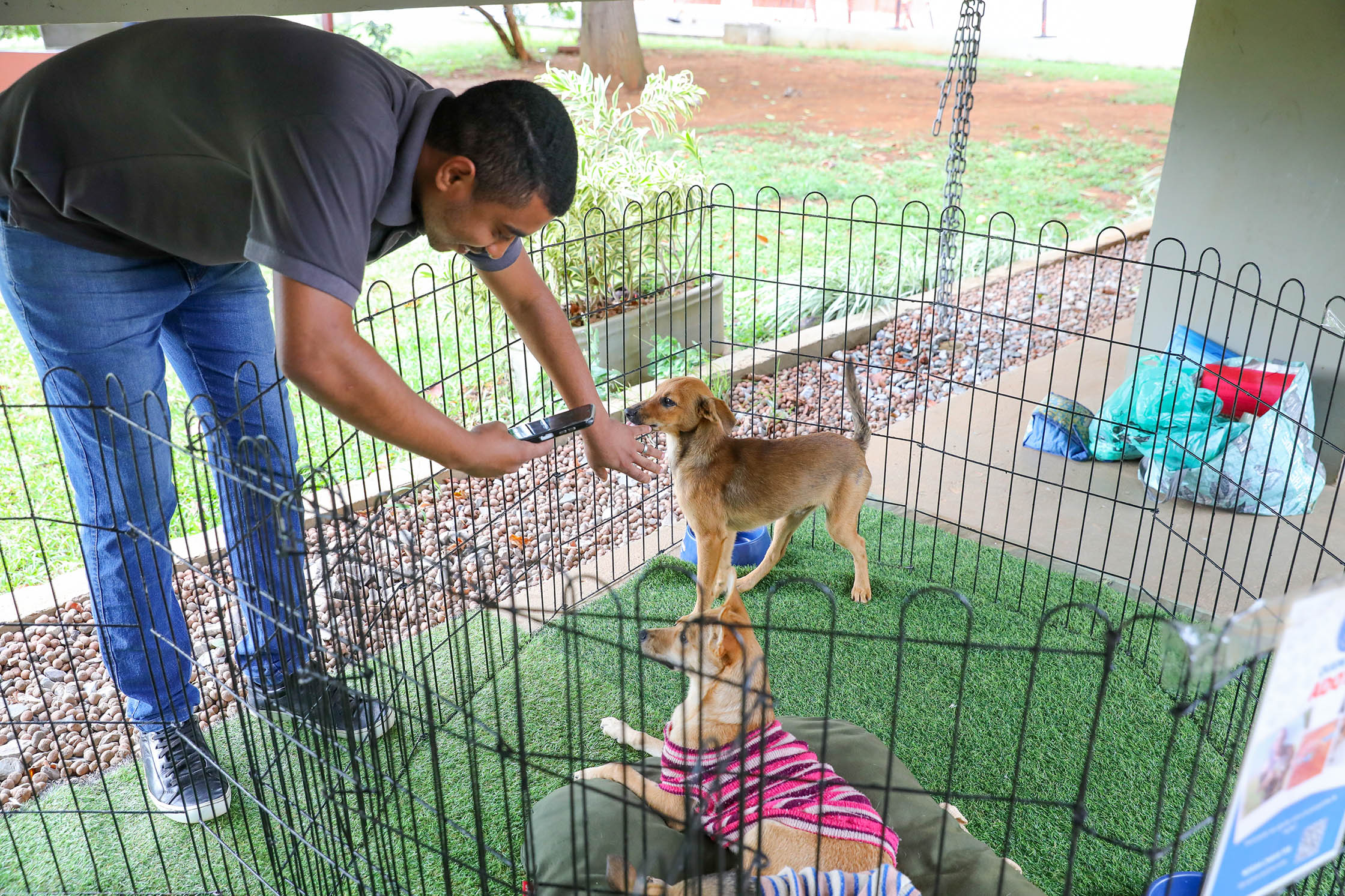 Interessado em adotar um cãozinho para fazer a alegria do filho, o assessor especial André Luiz Calixto ficou contente em passar no lugar certo ao ir trabalhar. “Eu tenho um filho autista que é muito apegado aos animais e eu também gosto muito. Já mandei as fotos para ele escolher o novo amiguinho e, se der tudo certo, vou passar aqui mais tarde e levá-lo para casa”, afirmou. Luiz acrescentou, ainda, que a adoção tem algo de especial. “É um sentimento gratificante poder dar uma vida melhor para um cachorro que estava abandonado na rua e poder cuidar dele”.