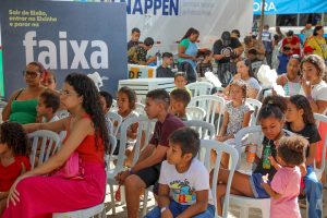 Junto às duas filhas pequenas, o aposentado Daniel Pedro da Silva, 54, aproveitou o evento para levar as três cachorrinhas – Chiara, Fifi e Pink – para a vacinação antirrábica. Com cada uma em um colo diferente, a família exaltou a facilidade de acesso aos serviços públicos proporcionada perto de casa. “Além de dar um passeio e vacinar as cadelas, tem muitas opções para a gente aqui. E a conscientização sobre a dengue, para o pessoal cuidar dos quintais, fazer a limpeza e jogar o que não presta no lugar correto”, observou Daniel.