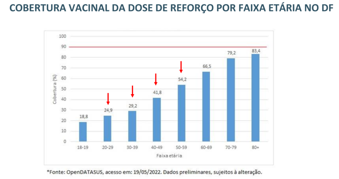 A população do Distrito Federal, principalmente jovem, precisa completar o ciclo vacinal contra a covid-19. Entre os que têm entre 20 e 40 anos, apenas 35% estão com o registro da dose de reforço. O dado foi apresentado pela Secretaria de Saúde em coletiva de imprensa realizada nesta quinta-feira (19).