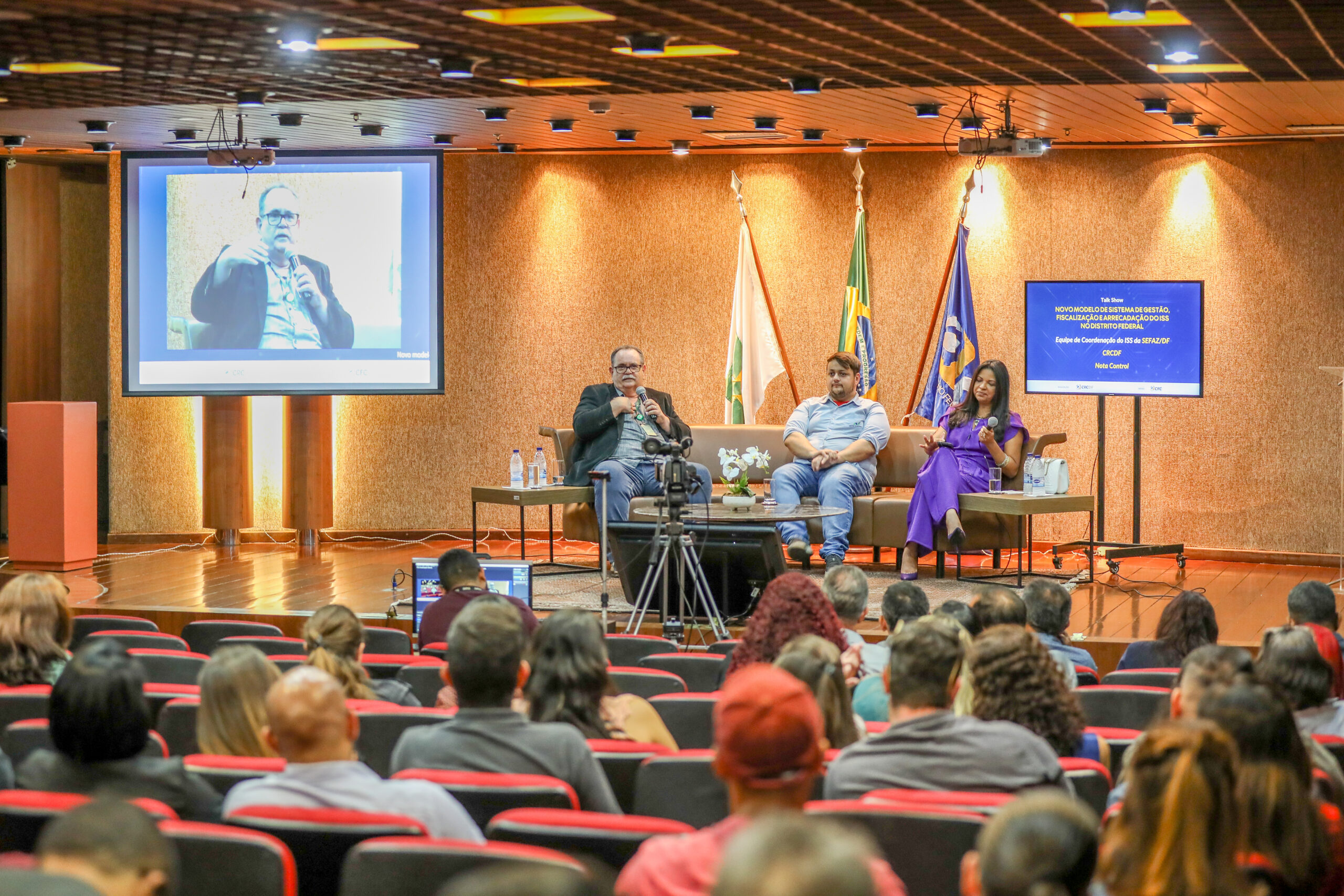 Um momento ímpar para esclarecer dúvidas e aprender funcionalidades do novo sistema criado para emissão de notas fiscais em que incidem o Imposto Sobre Serviços de qualquer natureza (ISS). Nesta quarta-feira (18), a Secretaria de Fazenda (Sefaz) e o Conselho Regional de Contabilidade (CRC) promoveram um talk show, na sede entidade de classe na Asa Sul, para debater o uso da plataforma com a presença de 80 contadores – os maiores usuários do sistema.
