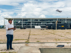 O professor da Unemat Fernando Birello colaborou com a Secec ao produzir um mapeamento aéreo da praça com a utilização de um drone | Foto: Hugo Lira/Secec