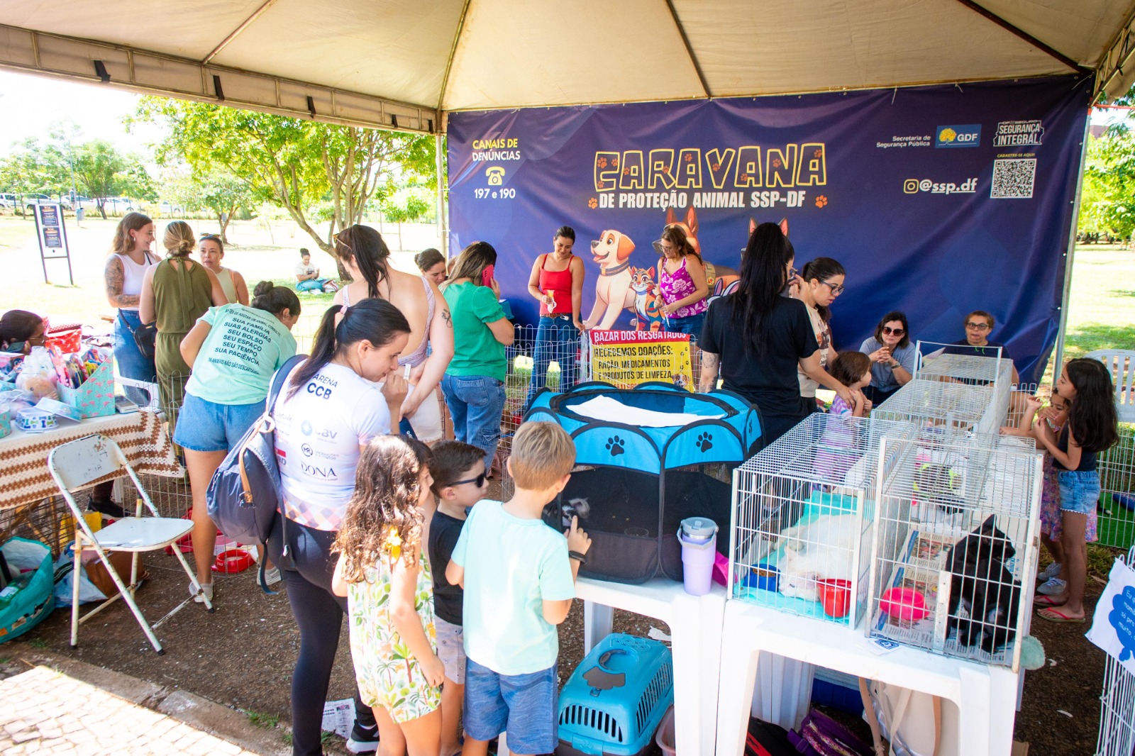 A Caravana de Proteção Animal foi ao Sudoeste, neste sábado (15), para levar conscientização sobre cuidados, defesa e bem-estar dos animais. O evento, realizado no ParCão do Bosque, é uma iniciativa da Secretaria de Segurança Pública (SSP-DF) e oferece serviços gratuitos e incentiva a adoção responsável.