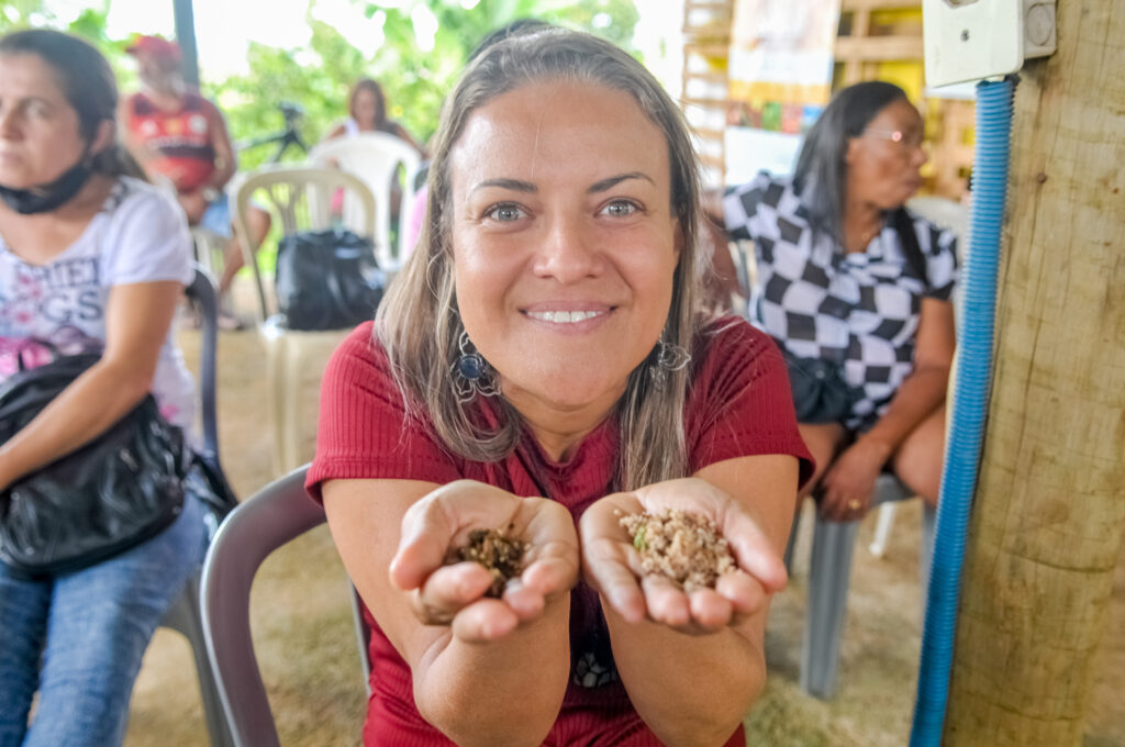 “Acredito que conhecimento é tudo. No ano passado, fizemos um curso de capacitação de agroecologia para floresta. Capacitamos mais de 70 pessoas. Temos parceria com escolas também, onde levamos a educação ambiental. Mas eu sempre tive essa vontade de que as pessoas conhecessem mais essa questão das Panc”, explica a coordenadora geral do Instituto Girassol, Hosana Alves do Nascimento.